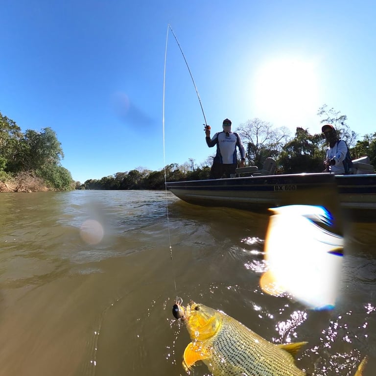 Um ambiente especial no meio de corredeiras, cachoeiras e pedreiras, com águas muito oxigenadas, que é o território preferido dos grandes dourados e que vai jogar muita adrenalina nas veias e fazer você ter uma experiência única.